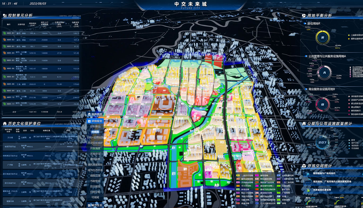 項目位于浙江寧波,規模17平方公里,基于未來城項目范圍搭建了城市信息模型(CIM),開發了城市藍圖、建設管理、智慧招商、運營服務、生態宜居和輔助決策六大智慧應用,形成大屏展示和WEB管理兩端使用工具,為項目建設招商和運營管理提供了有效的數字空間載體。